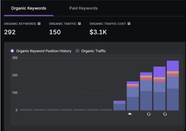 - Organic Keywords: 292 keywords now rank in search results, driving targeted traffic to the website.