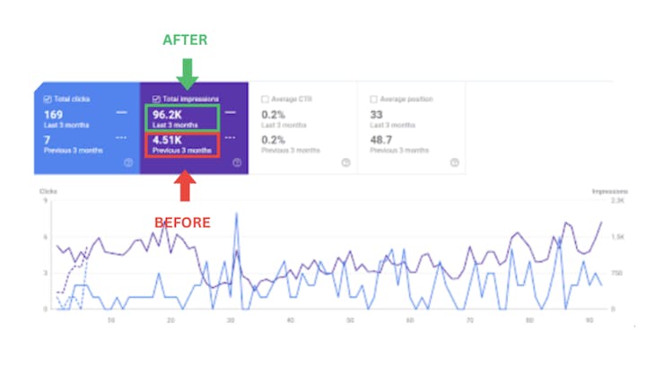 It was paired with a 2,871% increase in impressions, going from 4,510 to 96,200/month.