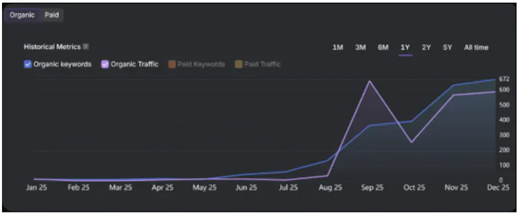 And here’s the icing on the cake: Organic traffic and keyword growth both surged dramatically.